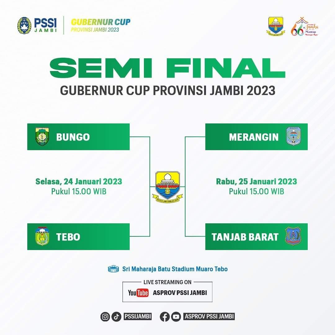 Semifinal piala Gubernur Jambi ini rencananya akan digelar selama 2 hari, yakni Selasa dan Rabu dengan waktu kick off 15.00 WIB.