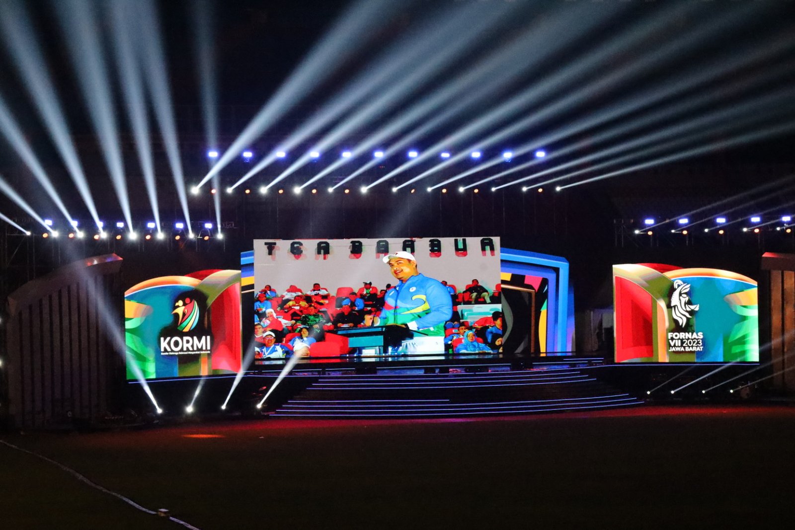 BANDUNG – Pengurus Komite Olahraga Rekreasi Masyarakat Indonesia (KORMI) Kabupaten Bungo menghadiri pembukaan Festival Olahraga Rekreasi Nasional (Fornas) VII 2023 di Stadion Si Jalak Harupat, Kabupaten Bandung, Jawa Barat, Minggu malam (02/07/2023).