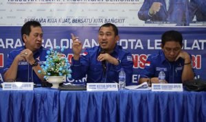 Sarolangun – Dua sahabat bertemu sambil makan malam, yakni Bupati Bungo yang juga ketua DPD Demokrat Jambi H. Mashuri, SP, ME secara tidak sengaja bertemu Bupati Tanjabtim Romi Hariyanto di RM sederhana Sarolangun dalam agenda yang sama menghadiri pembukaan MTQ provinsi Jambi malam ini. Mereka berdua duduk satu meja makan malam bersama, Hamas, panggilan akrab H. Mashuri, didampingi ketua Bakomstrada DPD demokrat Jambi Andas toto duduk satu meja, Romi dengan gaya yang santai lalu duduk bersama Hamas, sambil membuka pembicaraan. “Calon gubernur makannya harus banyak”, celoteh Hamas yang disambut riuh oleh rombongan, beberapa kali rombongan mengabadikan dua tokoh Jambi itu sedang bercerita sambil menikmati makan malam. “Abang harus sehat dan banyak makan jugo, biar terus bergerak keliling kabupaten”, timpal Romi kepada Hamas. Setelah makan malam, dilanjutkan dengan diskusi ringan sambil tertawa lepas, kedua tokoh ini menjadi perhatian banyak orang, disela-sela akan berpisah, Hamas mengajak Romi untuk salam komando dan diabadikan oleh beberapa orang dan berpesan kepada tokoh PAN jambi itu. “Semangat terus dindo, Insya Allah usaha tidak akan mengkhianati hasil”, pesan singkat Hamas yang penuh makna untuk Romi, mereka berdua berpelukan. (***)