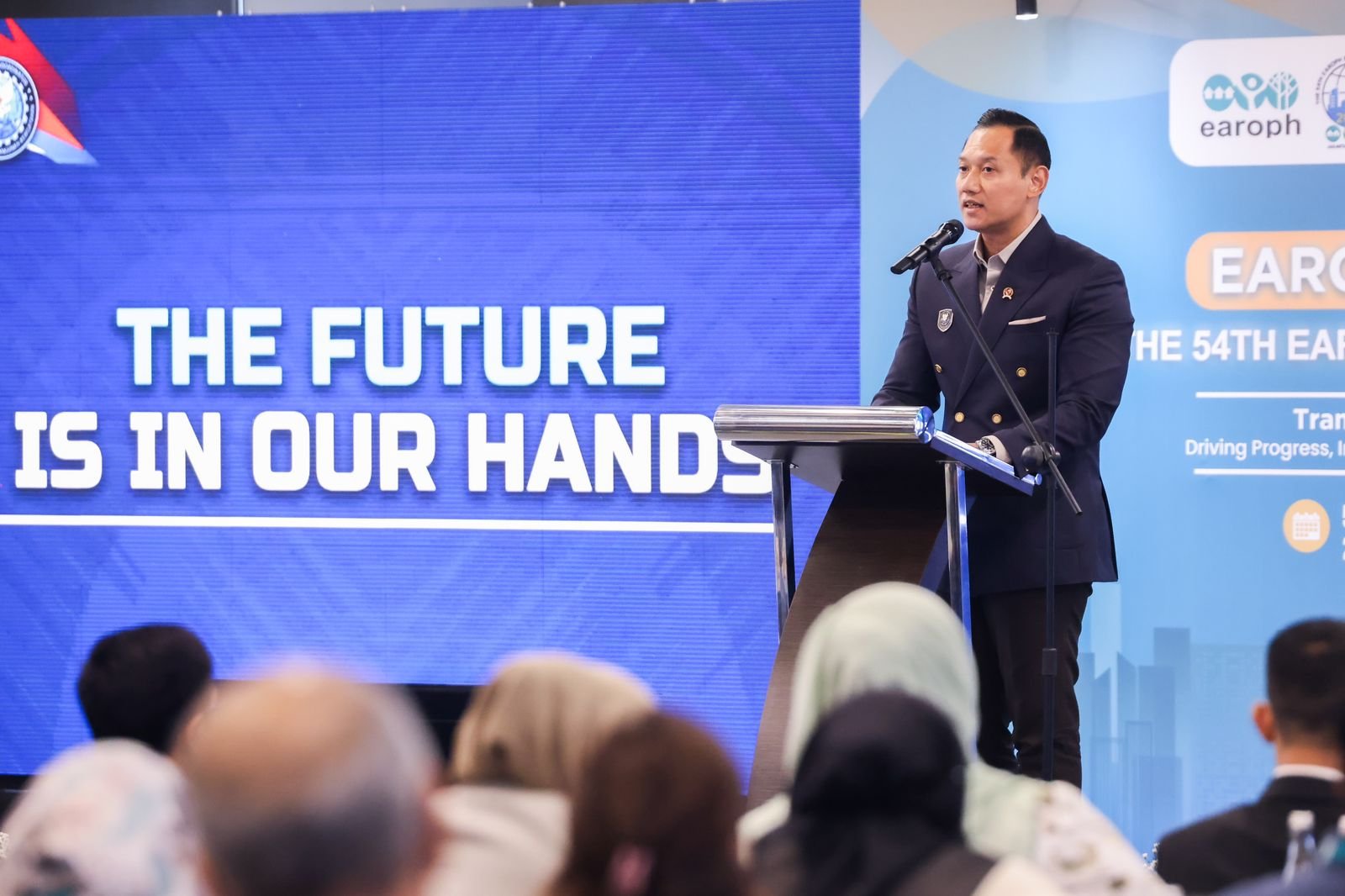 Menko AHY disambut oleh Presiden EAROPH Internasional, Ar. Jahangir Khan Sherpao; Presiden EAROPH Indonesia, Andiro Reoputra; Honorary President EAROPH Internasional Emil Elistianto Dardak yang juga merupakan mantan Presiden EAROPH Internasional periode 2022–2024; serta Sekretaris Jenderal EAROPH, TPR Mazzrina Dato Abdul Khalid.