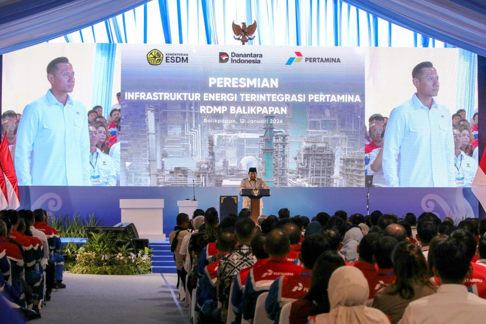 BALIKPAPAN – Menteri Koordinator Bidang Infrastruktur dan Pembangunan Kewilayahan, Agus Harimurti Yudhoyono (AHY), menegaskan bahwa infrastruktur energi Proyek Refinery Development Master Plan (RDMP) merupakan tonggak penting transformasi sektor energi nasional yang sejalan dengan visi pembangunan jangka panjang Indonesia. Hal tersebut disampaikan Menko AHY saat mendampingi Presiden Prabowo Subianto pada peresmian RDMP di Balikpapan, Senin (12/1/2026). RDMP ini menjadi salah satu proyek strategis nasional dalam memperkuat ketahanan dan kemandirian energi.